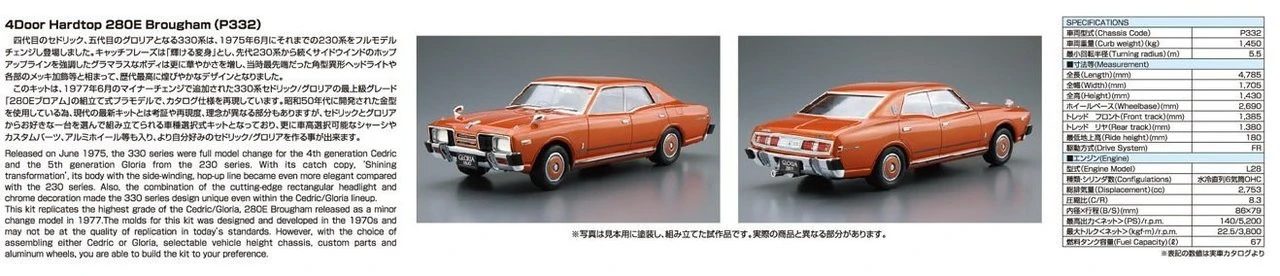 Aoshima 53539 The Model Car 53 NISSAN P332 CEDRIC/GLORIA 4HT280E Brougham ’78 1/24 scale kit