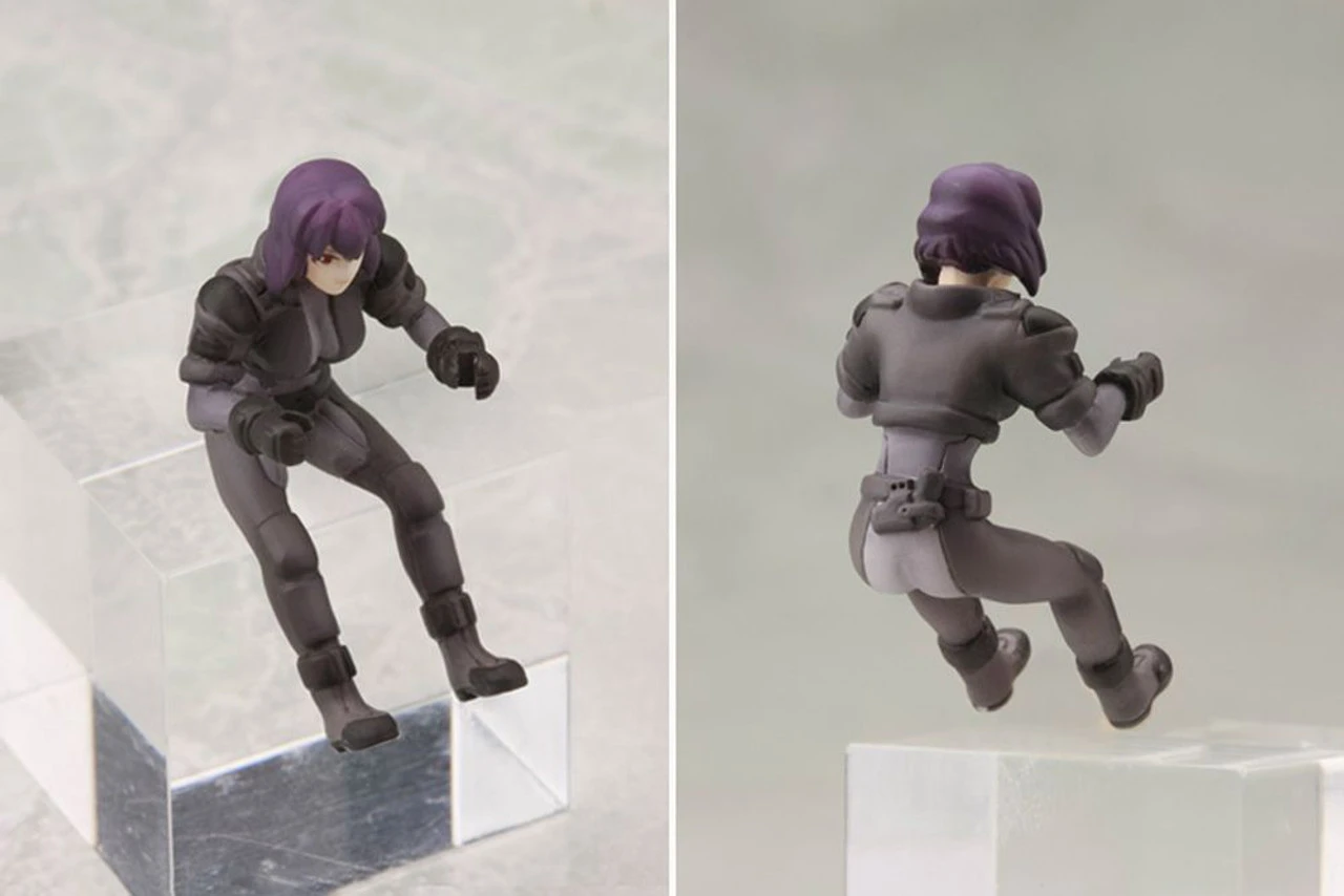 – Unpainted figures of Motoko Kusanagi (seated), Batou (standing), and Miki (seated) are included in the same 1/35 scale as the Tachikoma.