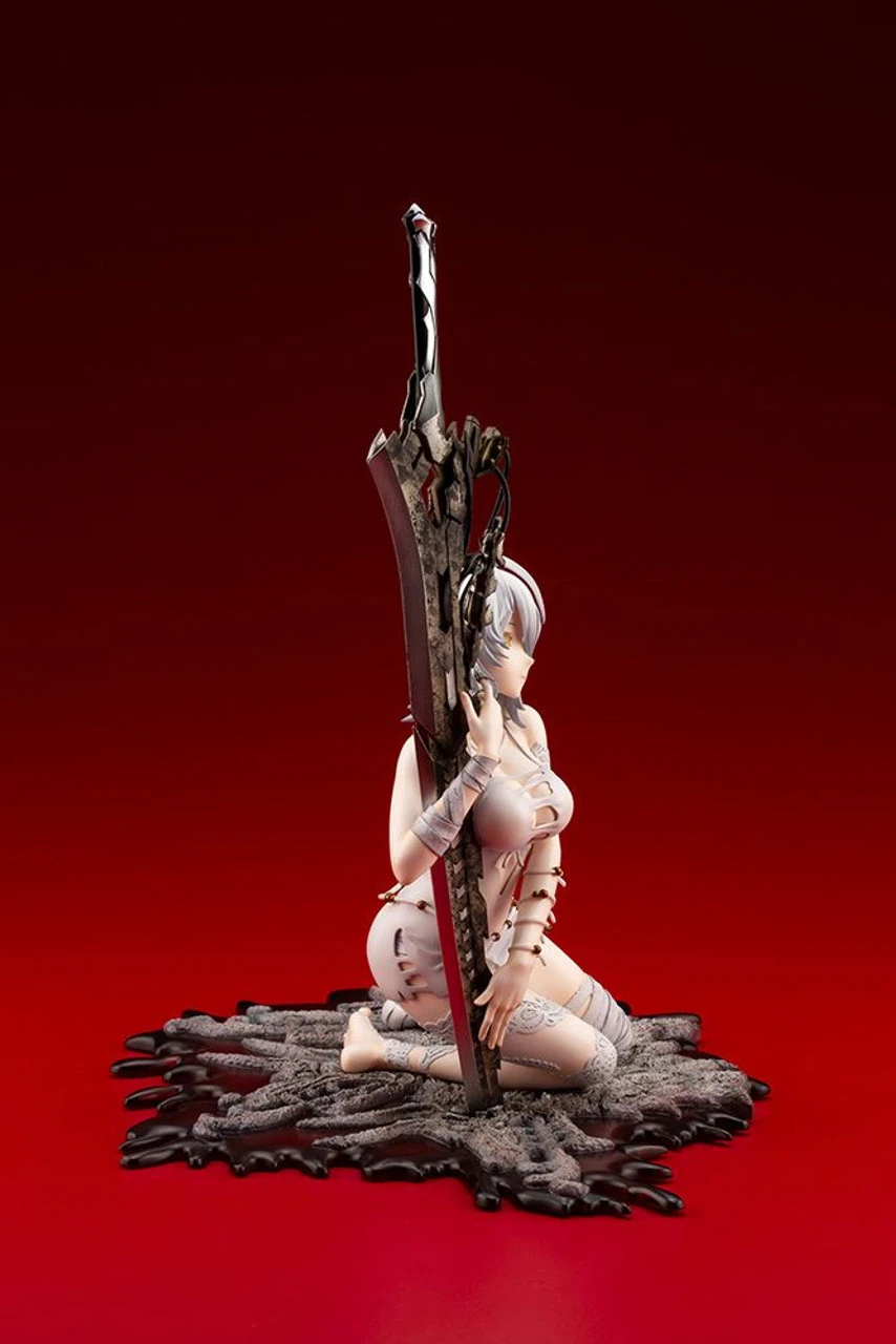 Io herself can be seen waiting for the protagonist’s return in this dark and harsh world. Her eyes look far off into the distance, with her fleetingly beautiful expression showing her mind is full of thoughts of the protagonist. The sculpt of her face, the detailed body jewelry that adorns her, the slight transparency in her coloring–every aspect of this figure captures the essence of this gorgeous character. Just like the base and sword, her bandages and the details of her arms and legs have been faithfully recreated, with the sculpt reflecting the expression of movement in her toes and details on the back of her hands to create a finish that seems completely lifelike.