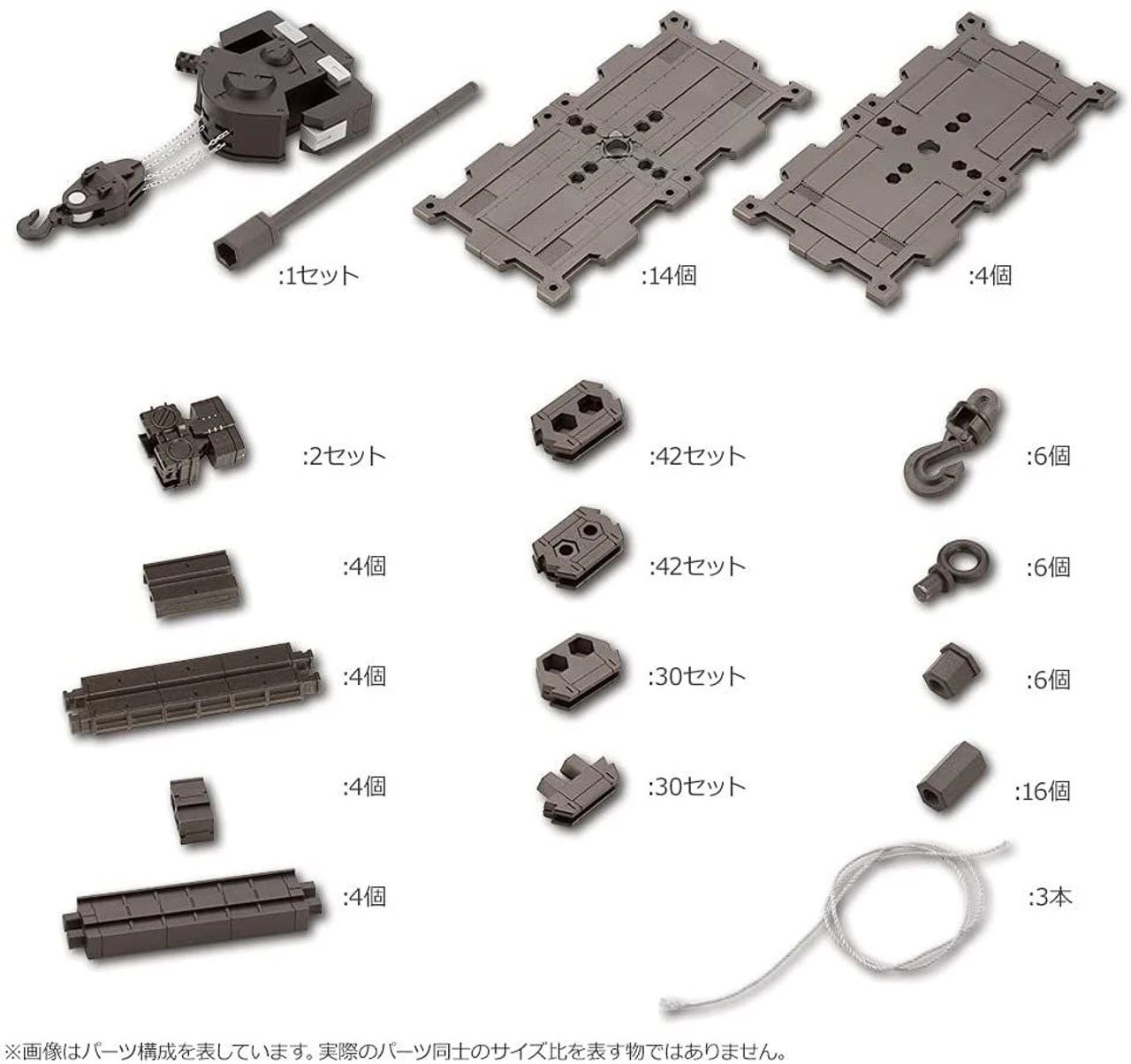 – The Crane Unit can slide horizontally or vertically by attaching to the Girder Unit and Running Rail Unit. Multiple Girder Units and Running Rail Units can be connected together to fit your block base.