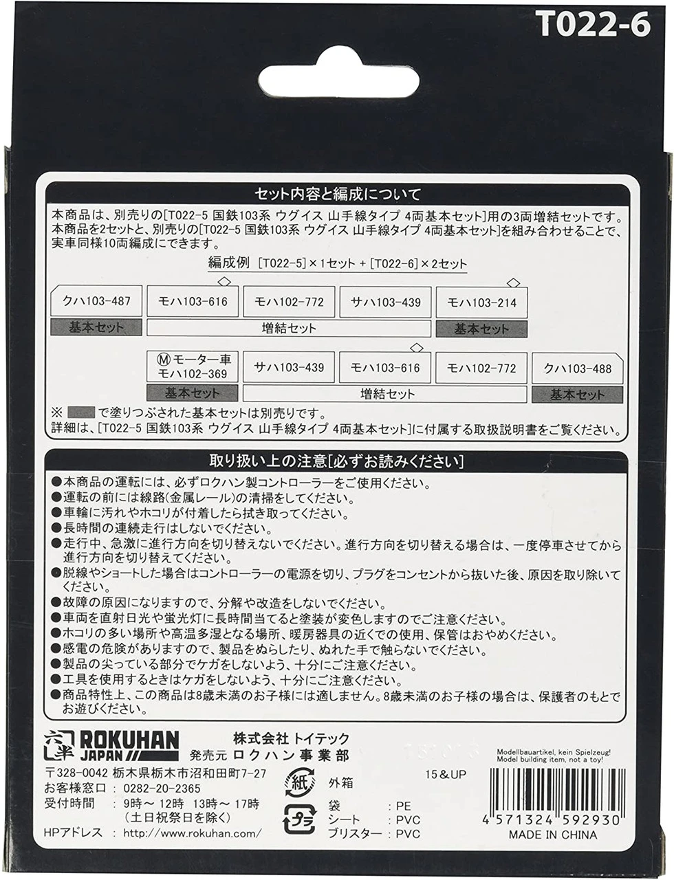 Rokuhan T022-6 JNR Series 103 Yamanote Line Type 3 Cars Add-on Set (Z Scale)