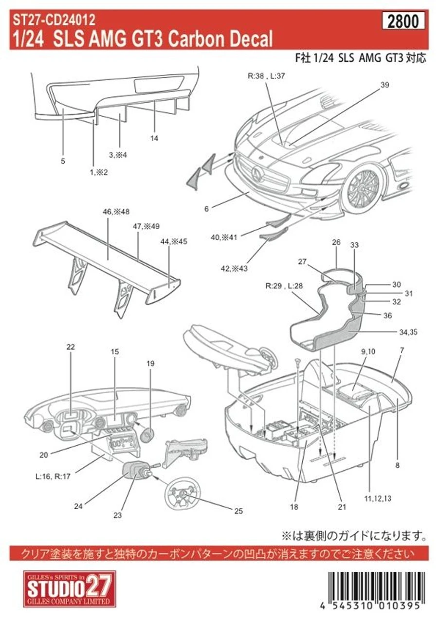 Studio27 ST27-CD24012 Mercedes SLS AMG GT3 Carbon Decal Set for Fujimi 1/24
