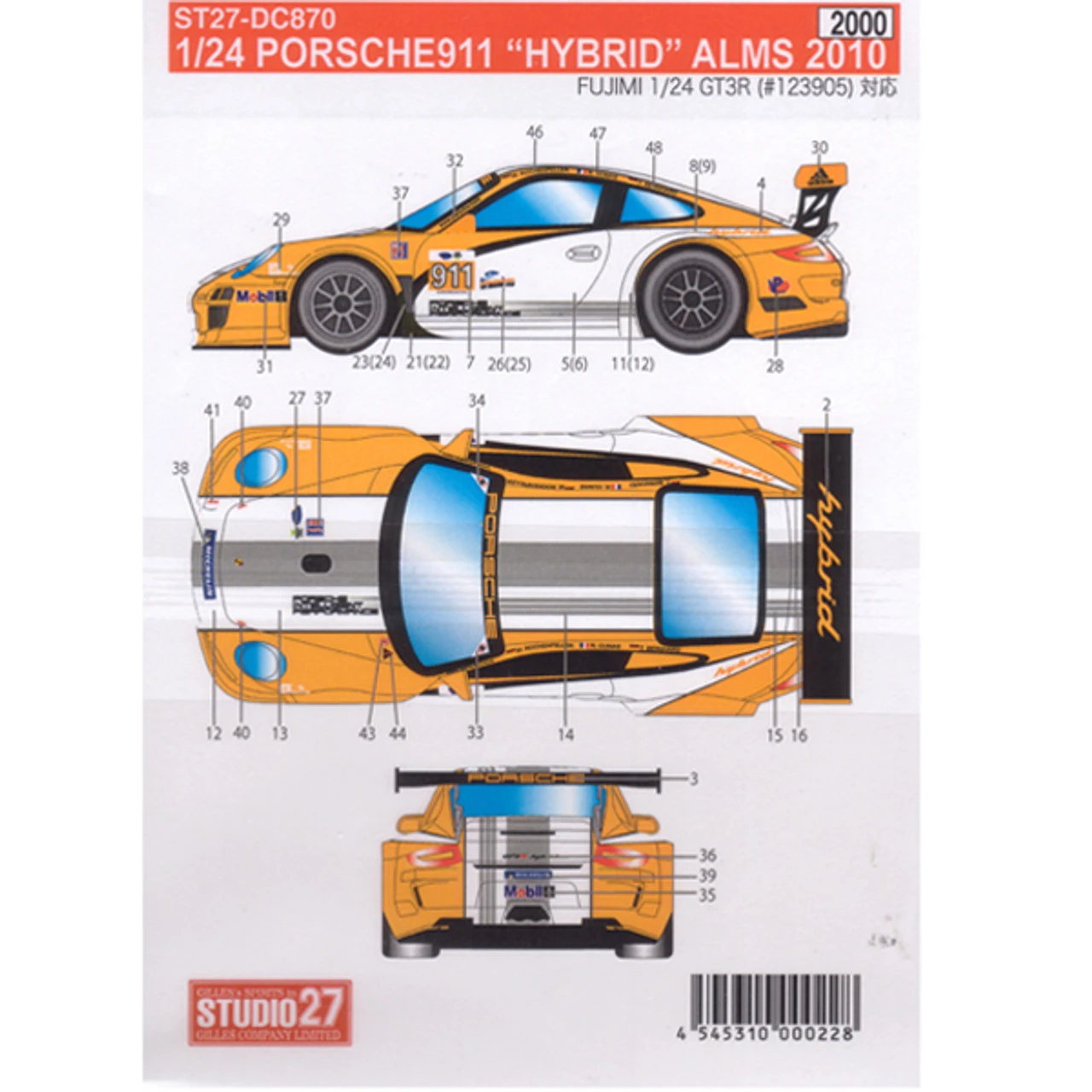 Studio27 ST27-DC870 GT3R Porsche911 “HYBRID” ALMS 2010 Decal for Fujimi 1/24